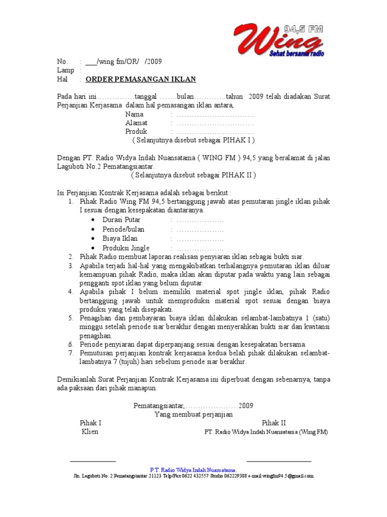 Surat format perjanjian kontrak kerja karyawan perusahaan swasta. Anda harus mendeskripsikannya dengan jelas dan rinci, agar tidak terjadi kesalahan antar dua pihak. Sebagai contoh, mou digunakan sebagai perjanjian kerjasama tenaga kerja atau karyawan dengan perusahaannya, perjanjian bidang kesehatan antara pasien dengan pihak rumah sakit, perjanjian bidang pendidikan antara tata usaha dengan honorer, dan sebagainya. Berkewajiban ikut serta meningkatkan mutu pelayanan kantin sehat. Surat kerjasama atau kerap juga disebut dengan istilah mou (memorandum of understanding) adalah surat yang dibuat untuk tujuan melakukan. Surat perjanjian kerjasama mou dan contohnya perlu diketahui oleh para pebisnis. Surat perjanjian kerjasama atau memorandum of understanding (mou) ini dalam dunia bisnis sebelum mengetahui bagaimana contoh surat perjanjian kerjasama yang baik dan benar, maka risiko terjadinya perselisihan antar pihak yang bekerjasama juga menjadi semakin kecil terjadi jika. Contoh mou kerjasama (download) 5/5 (1). Jika anda merasa cocok dengan tawaran kerjasama tersebut, maka anda bisa membalasnya dan menanyakan. Memorandum of understanding adalah ungkapan persetujuan untuk dilanjutkan menjadi lebih sah dan mempunyai intensi yang sama dari semua pihak yang terlibat di dalamnya. Berikut saya sampaikan contoh kerja sama mou, tapi tidak lengkap. Surat perjanjian antar perusahaan yang ditampilkan diatas adalah mou antara perusahaan dengan bank. Savesave contoh mou kontrak kerja for later.